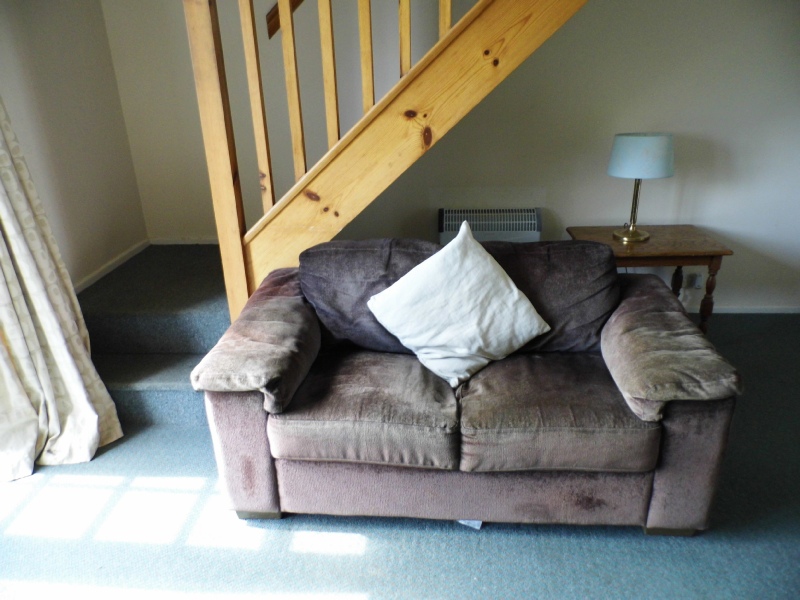 Living room with electric fan heater coal-effect fireplace 32” TV / DVD and comfy sofa for 2.