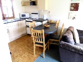 Kitchen with everything you need for self-catering. Even the washing up liquid, dishclothes, tea-towels, oven gloves etc supplied. Full size cooker, fridge, microwave, toaster, kettle.